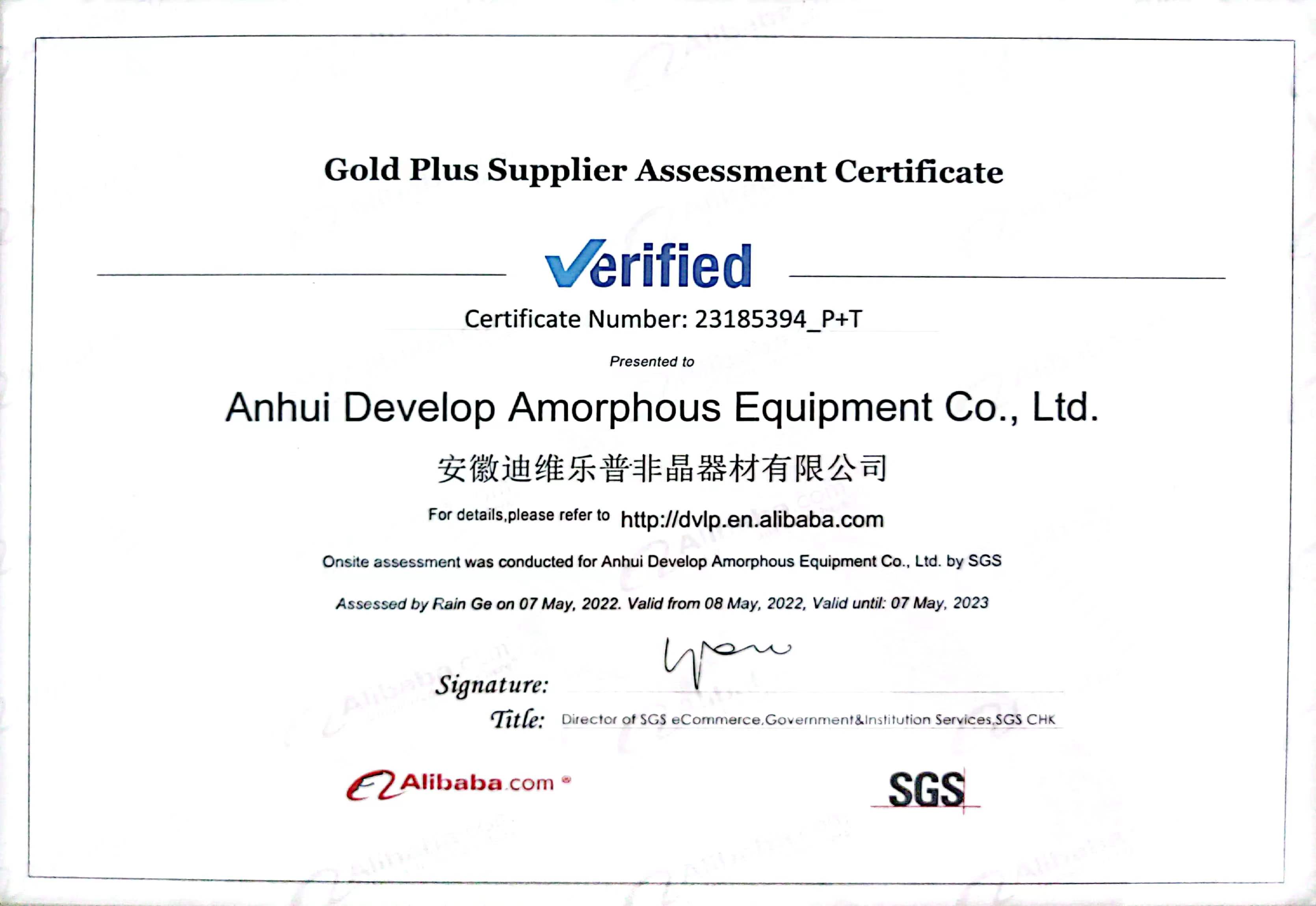 SGS質(zhì)量體系證書(shū)